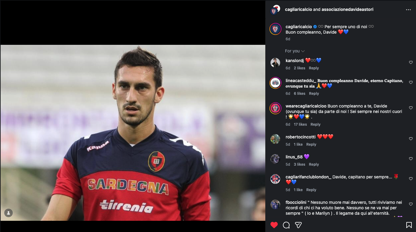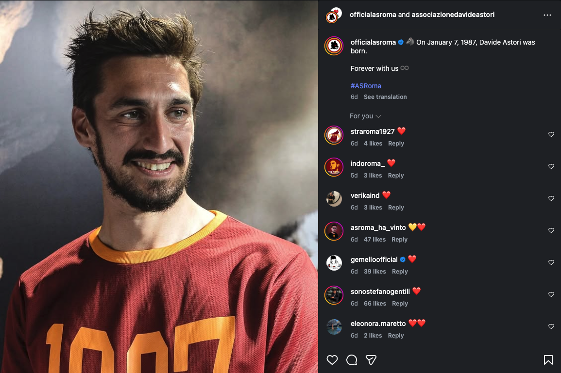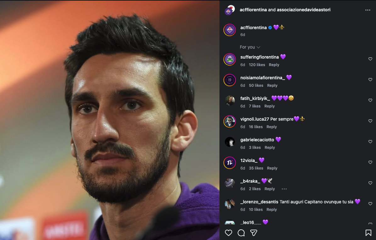 Roma, Fiorentina e Cagliari insieme nel ricordo di Davide Astori